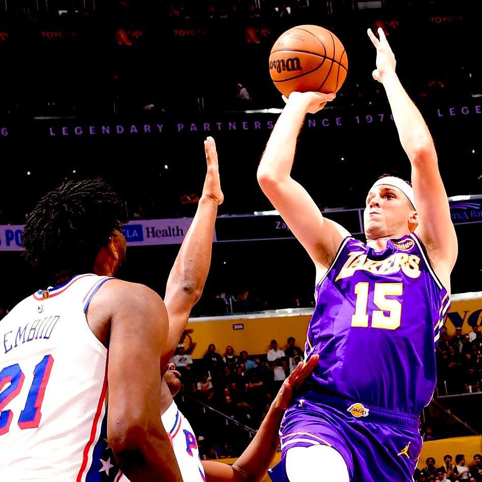 湖人队,八村塁7中5,3分球2中2得到了砍下了14分7板1助、拉拉维亚7中5得到了14分2助3断、艾顿5中4贡献10分6板2帽、东契奇10中3,三分球4中0得到了10分4板2助,因伤退场。斯玛特5中2得到了7分4板5助,得分全部来自末节,成为取胜功臣。范德比尔特7中3得到了6分6板1助2断、克莱伯3中2得到了4分4板4助3断,决胜时刻送出关键助攻。克内克特2分1板 。